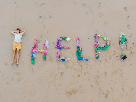 Plastic pollution. debris discovered on beach during environmental cleanup initiative