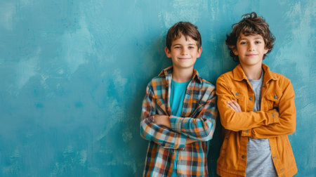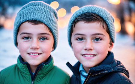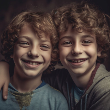 A heartwarming image of two brothers embracing each other, their smiles radiating genuine affection and joy.