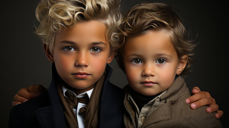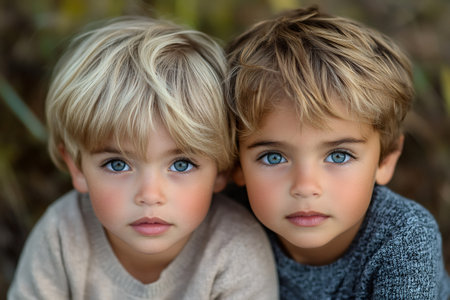 Two young brothers with blue eyes and blonde hair portraying childhood innocence