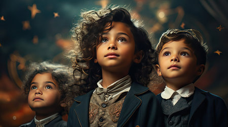 A diverse group of children standing beneath the expansive sky, each with their own unique perspective and emotions.