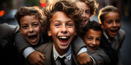 An AI generated illustration of a group of enthusiastic young boys standing next to each other
