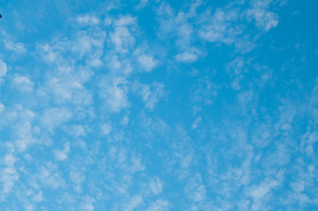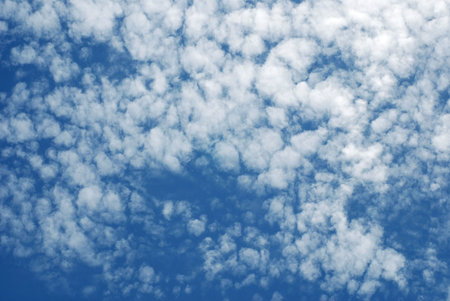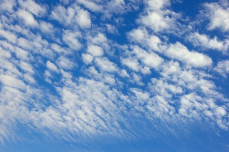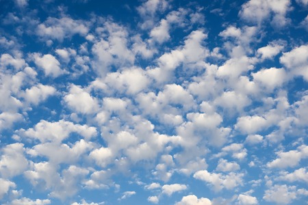 White clouds in blue sky, background . Altocumulus cloud formation
