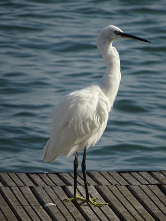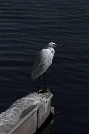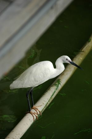 Egret standing on the edge of the pier