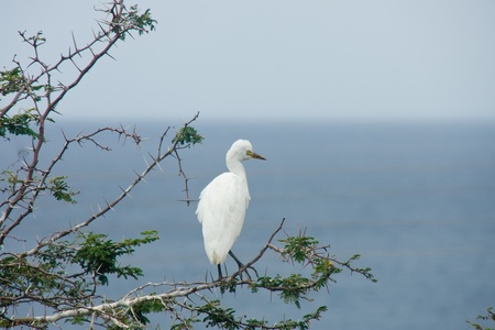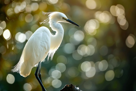 Capture the graceful side posture of the white egret in the nature