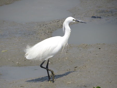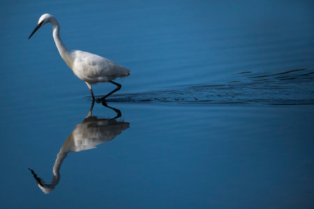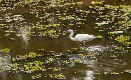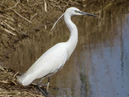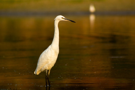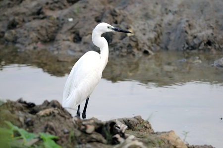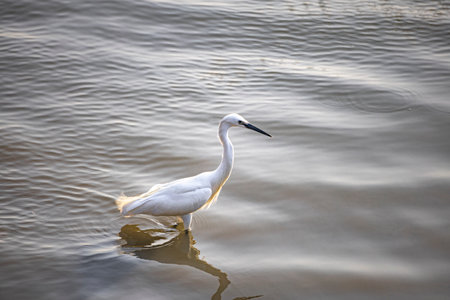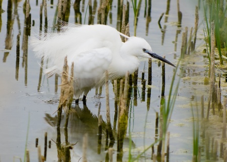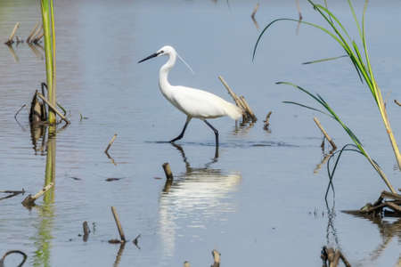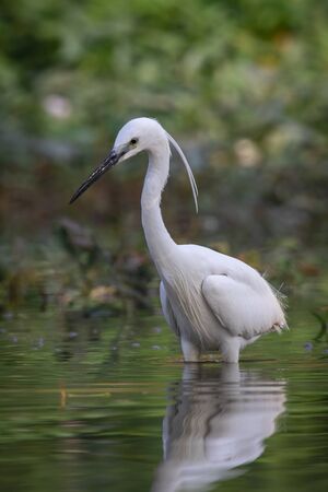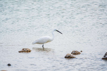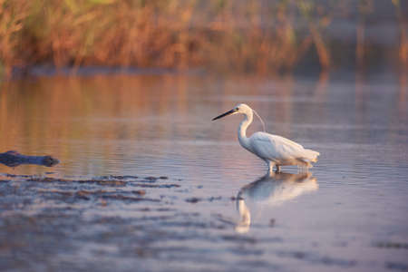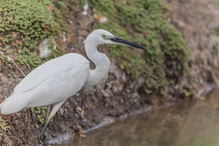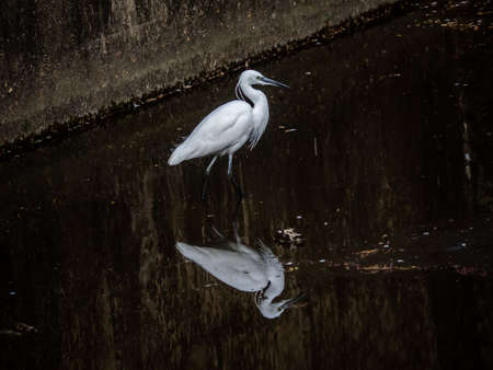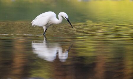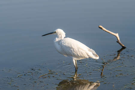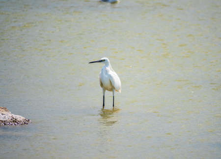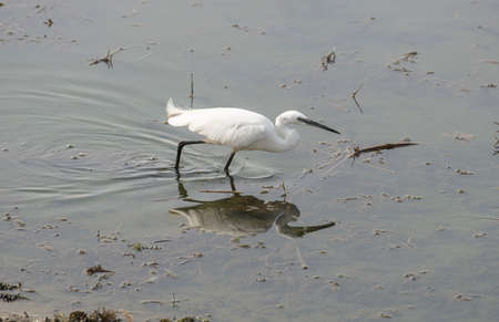 Little egret or Egretta garzetta a small heron searching for food