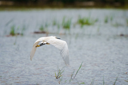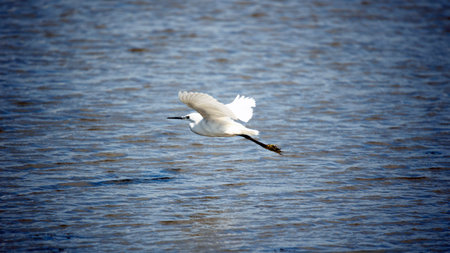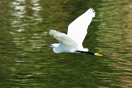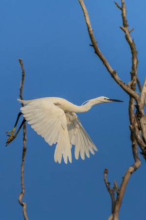 Little egret (Egretta garzetta) in flight. Location: Danube Delta, Romania