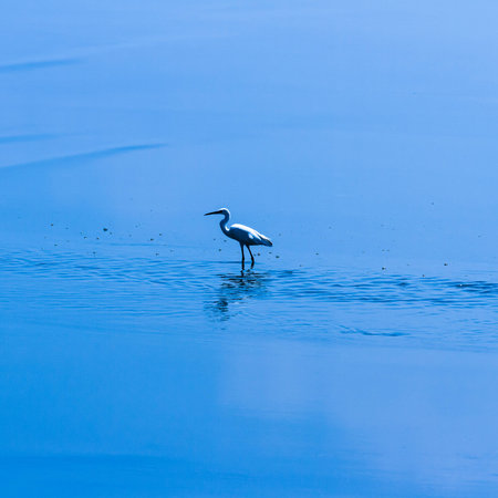 Egret in a lake in search of food waiting to strike