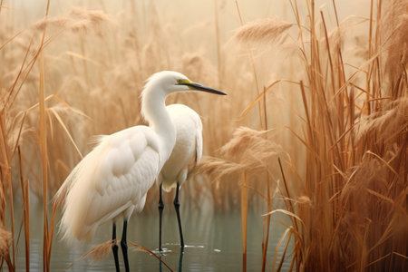 Graceful White Birds Amidst Verdant Green Bulrush: An Artistic Symphony in 3:2 Aspect Ratio