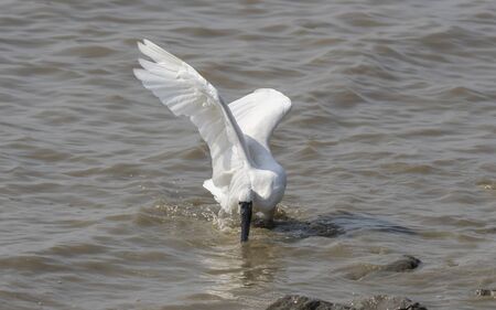 Closeup of a Little Egret, Egretta garzetta, fishing