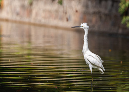 Little Egret wading across pool in search for food