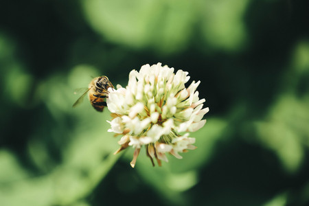 Close-up of Bumblebee Pollinating White Flowers in Springtime