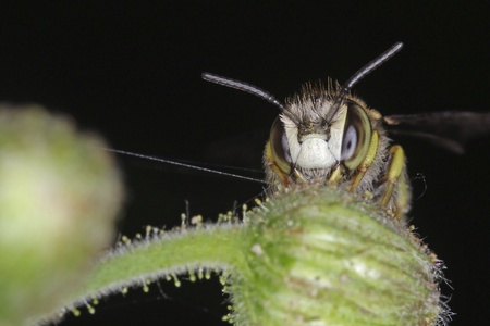 a large dangerous bee extracts nectar from the flowers of the plant peppermint