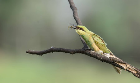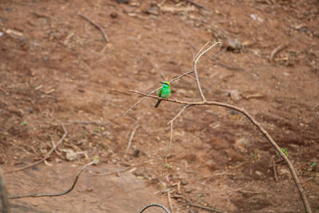 Green Bee-Eater bird perched on a branch waiting for insects to be eaten