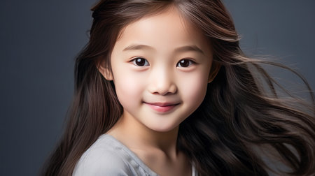 Portrait of a cute little asian girl on gray background.