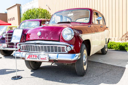 Samara, Russia - May 8, 2022: Vintage soviet Moskvich-407 (1961) vehicle at the city street during retro car show