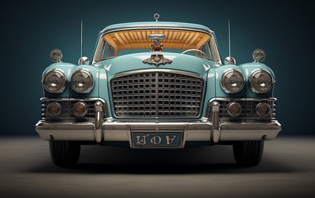 The mystique of a classic Fender car is enhanced by the night, with its emblem and grill taking center stage. This vintage masterpiece is a celebration of automotive history and design. AI generation