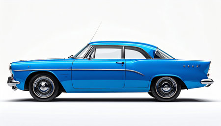 classic vintage car sits proudly on a pristine white isolated background, showcasing its timeless beauty and sleek design, evoking a sense of nostalgia and sophistication, perfect for car enthusiasts and retro-themed designs, highlighting the elegance of a bygone era. ai generated