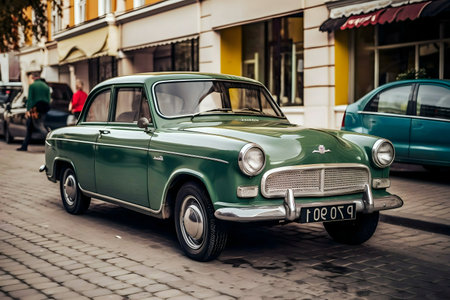 an old car with a realistic style an old vintage car with green color retro and classic car