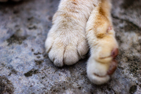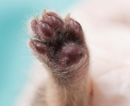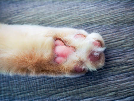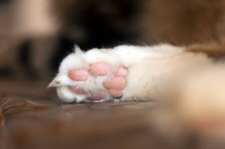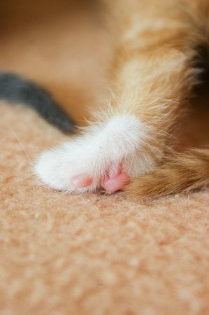 Shallow depth of field (selective focus) and macro image with the paw of a female shorthair european cat.
