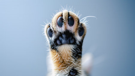 A dog's paw isolated on plain light-color background, close-up. AI generative