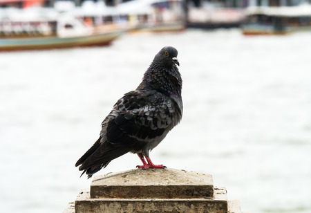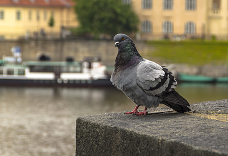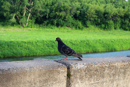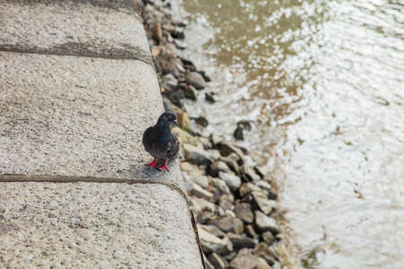 Pigeon sitting on the embankment of river
