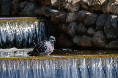 Dove bathes in a creek at hot summer day