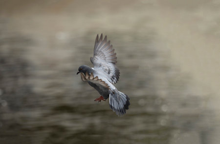 Pigeon Flying Over Water: Close-up Gray, Gray Plumage, Urban Bird in Flight, City Wildlife Urban Wildlife, Soaring Pigeon, Water Background, Wingspan, Detail of Feathers City