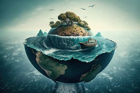 Global warming and Global Sea Level. Global sea levels are rising as a result of human-caused global warming. Oceans warm due to an increasing global temperature. AI generative.