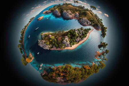 islands, bays, high dynamic range images, environment maps, spheres, equidistant projections, 360 degree panoramas, high resolution images. Generative AI
