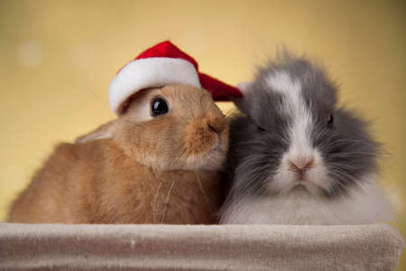 cute domestic rabbits sitting together on the ground for holiday