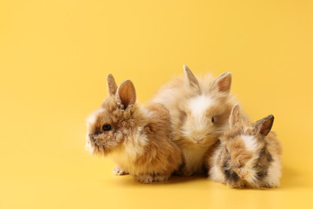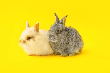 Cute little rabbits on yellow background. Space for text