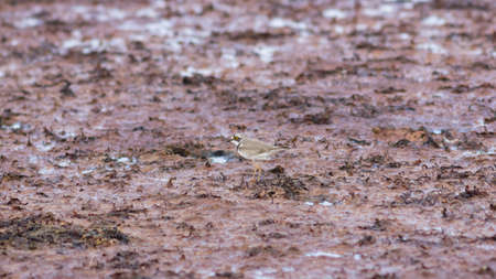 Little ringed plover (Charadrius dubius) searching for food in the wetlands in spring.
