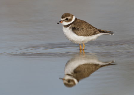 Semipalmated Plover (Charadrius semipalmatus) wading in a shallow pond - Estero Island, Florida