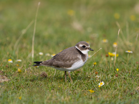 Ringed plover, Charadrius hiaticula, Single bird on grass, Cornwall, September 2024