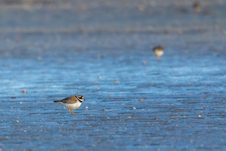 A common ringed plover (Charadrius hiaticula) foraging during fall migration on the beach.