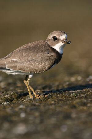 Little ringed plover in natural habitat. Portrait of Little ringed plover, bird standing on lake shore, Charadrius dubius