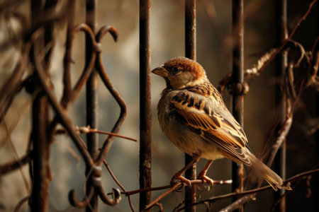 Portrait of a sparrow on chain