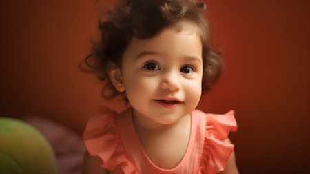 Smiling toddler with curly brown hair looking at camera indoors generated by artificial intelligence