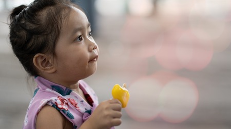 Child eats sweet lollipop candy