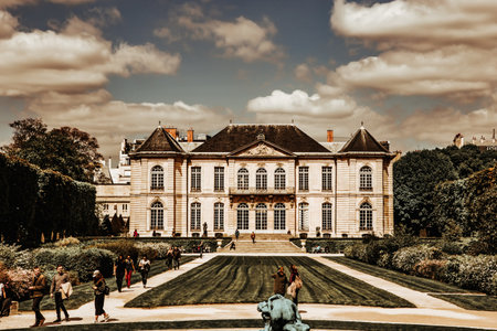 PARIS, FRANCE, APRIL 23, 2017: exteriors, sculptures and gardens of the Rodin museum, april 23, 2017, in Paris, France