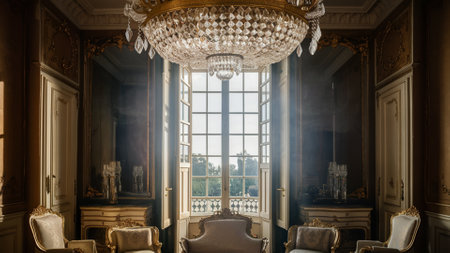 Discover the opulent beauty of a luxurious historical room featuring elegant decor, a crystal chandelier, and vintage furnishings that exude sophistication.