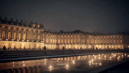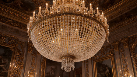 Luxury chandelier illuminates elegant domestic room in famous historic building generated by artificial intelligence