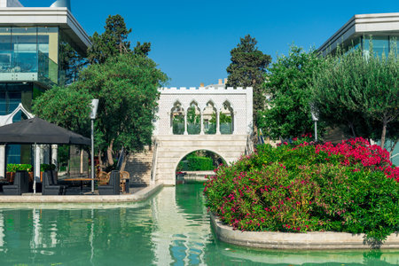 Baku, Azerbaijan - June 24, 2018: The Little Venice water park is located on the Baku Boulevard in the center of Baku city in Azerbaijan