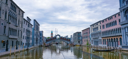 Viserba, Italy - June 25, 2024: Grand Canal at Theme park Italy in Miniature or Italia in Miniatura in Rimini, Italy - Reproduction of famous attractions in a small scale