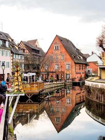 Spectacular colorful traditional french houses on the side of river lauch in petite Venise, Colmar, France.