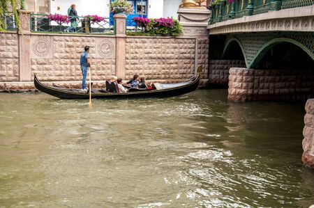 Eskisehir, Turkey - Mayer 29, 2016: Gondolas are sailing in the Badger River, Eskisehir.