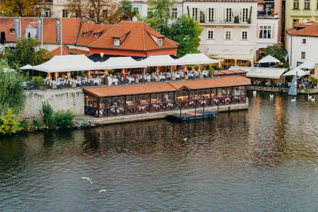Prague, Czech Republic - September 15, 2015: Vltava river in Prague. Vltava is the longest river within the Czech Republic.