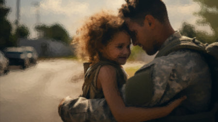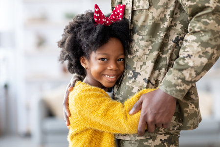 pretty little girl hugging her military father