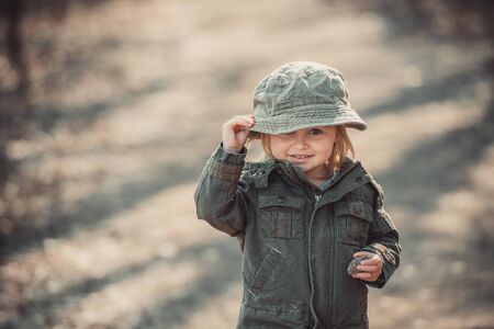 child girl wear military uniform. kid dressed like a soldier