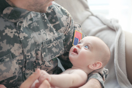 Military father holding his newborn baby